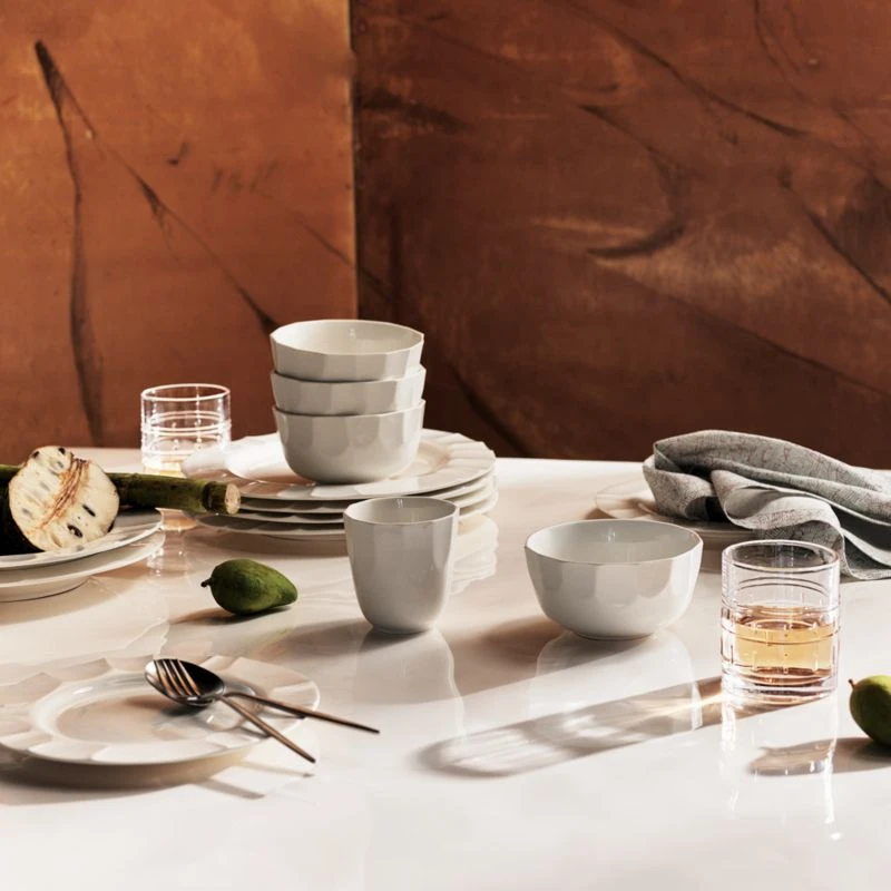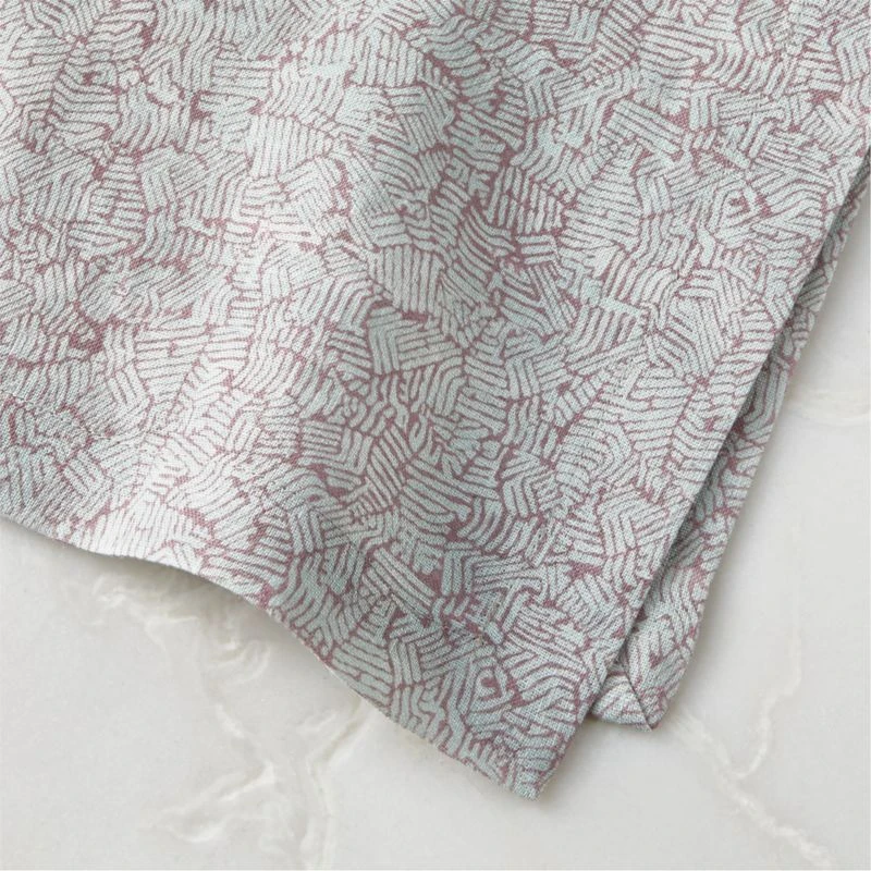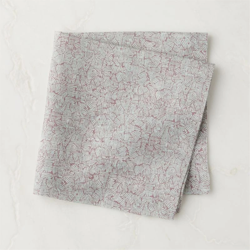 Inspired by the idea of leaving home for a new beginning, blue linen napkin features an abstract pattern by Tavia Forbes and Monet Masters of Forbes Masters. Based on the view from above, the pattern extrudes the built environment from its landscape, overlapping and building on one another, much like migrant communities. Made of EUROPEAN FLAX™-Certified Linen, this napkin features natural yarns that create slight variation within each piece. CB2 exclusive.