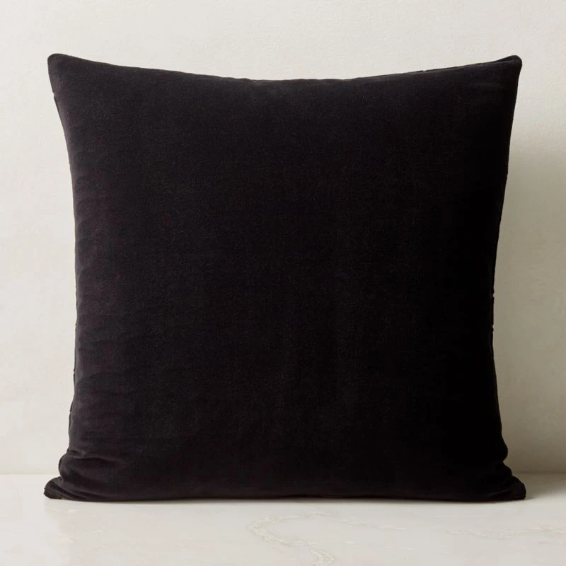 Arabella Black Velvet Throw Pillow with Down-Alternative Insert 23” 23″Wx23″H