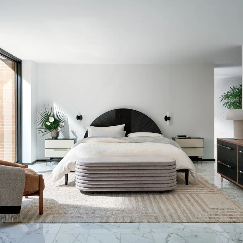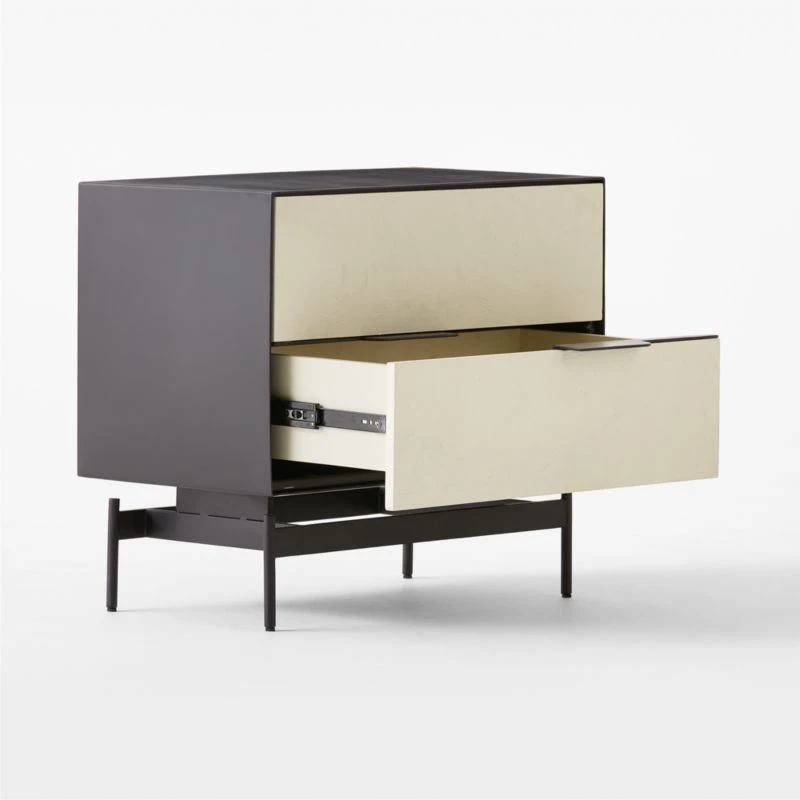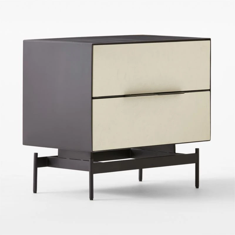 Avers 2-Drawer Plaster and Black Metal Nightstand 26″Wx15.5″Dx23.5″H