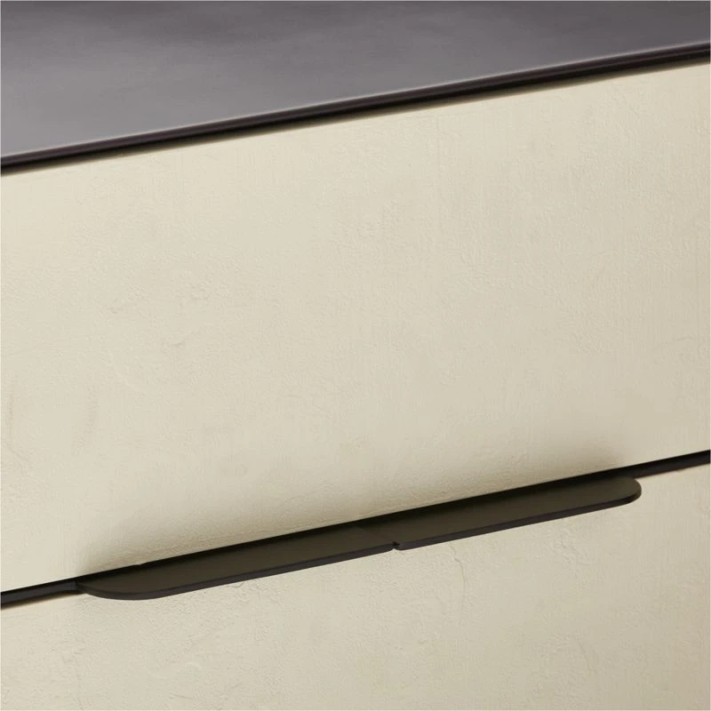 Designed by VUUE, blackened stainless steel holds two deep drawers finished in textured concrete. The simple, angular design is complemented by two flat stainless steel handles that disappear when viewed straight on. CB2 exclusive.