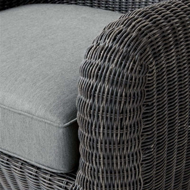 Bacio Graphite Rattan Outdoor Lounge Chair with Grey Sunbrella® Cushions 33.5″Wx36″Dx29.5″H