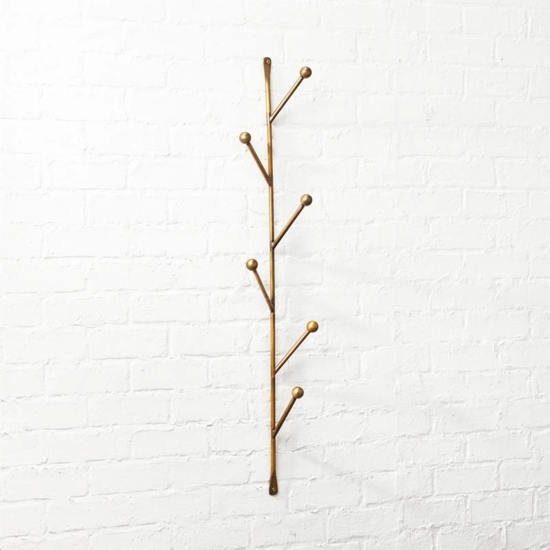 Sculptural storage supports hats, coats, bags on the vertical. Ideal for large and small spaces alike, compact branch-like design holds six arms that rotate 180 from the center to create an arrangement that best fits your space. Crafted of iron with a warm gold finish, we can’t think of a decor scheme it won’t compliment. PS, also ideal in the bedroom for necklaces, scarves, and your favorite cozy robe.