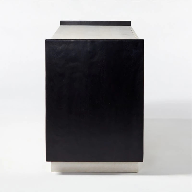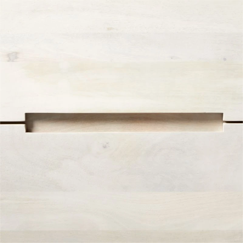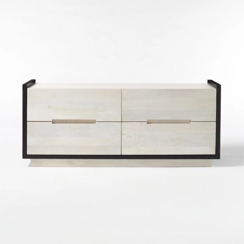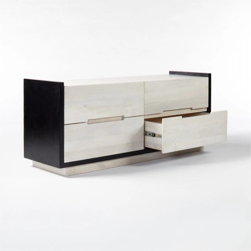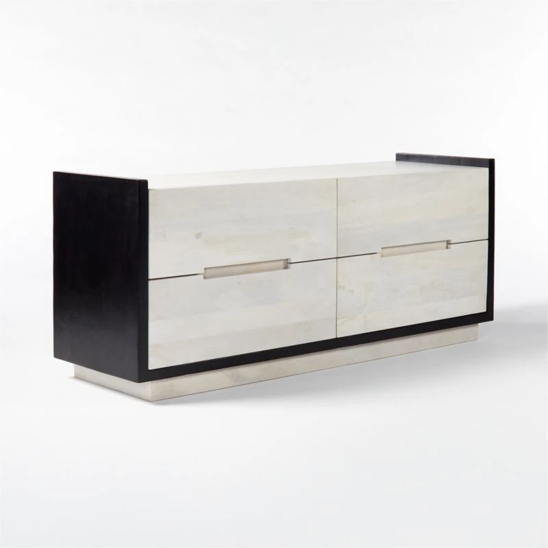 Designer Nicholas Obeid brings a graphic pop to the bedroom with this striking low dresser. Whitewashed solid acacia wood and base are framed in contrasting blackened mango wood. Four drawers provide ample storage. Learn about Nicholas Obeid on our blog. CB2 exclusive.