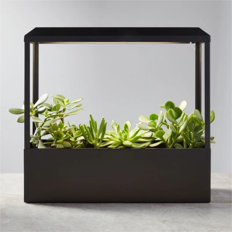 Smart Growhouse makes sustaining a year-round garden in your home not only doable, but beautiful. The stylish growhouse is perfect for growing herbs, leafy greens, cacti, succulents and houseplants indoors. Full-spectrum, eco-friendly LEDs produce museum-quality lighting that supplies an optimal blend of colors to support seed starting, growth and flowering. Features a manual power switch as well as the option to connect to the Modern Sprout App for customizable programming and recommendations. Can be wall-mounted.