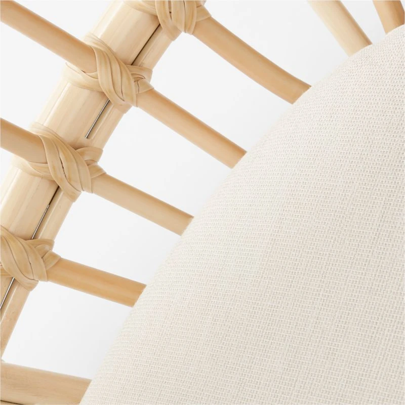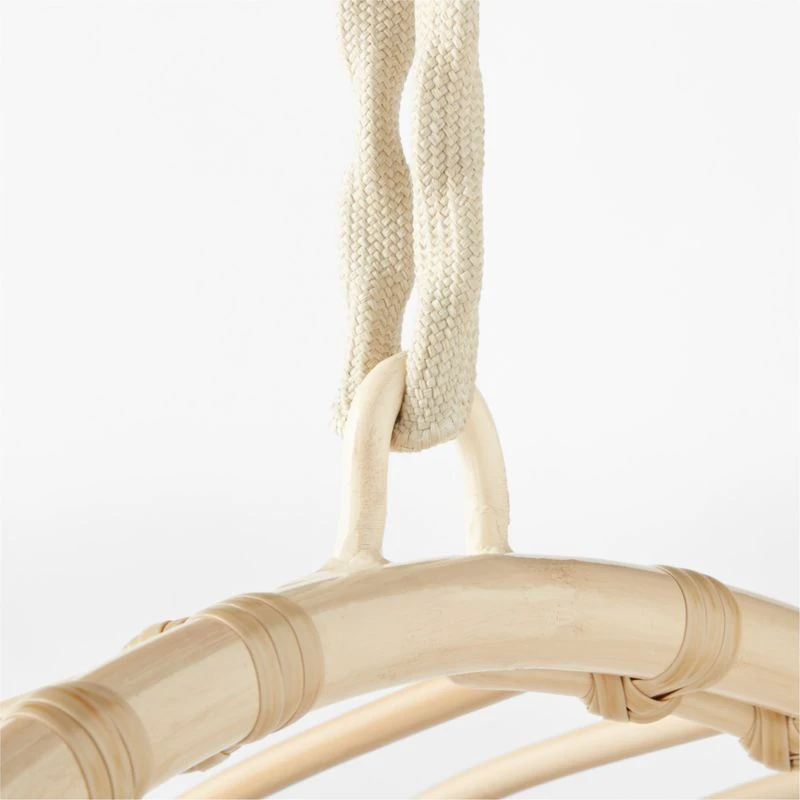 Brazilian design informs the open weave of this resin wicker hanging chair. Designed by Hettler.Tüllmann, this breezy chair hangs beautifully outdoors or indoors. Two plush textured cushions are tucked inside for an ultra comfy seat. Sewn from a Sunbrella ® performance fabric, cushions are durable, comfortable, easy to clean and color-stable. CB2 exclusive.