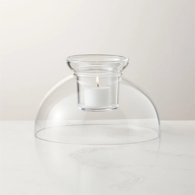 Curves and candlelight meet in a graceful candle holder designed by Italian design icon Gianfranco Frattini. The two-piece set is crafted of blown glass, using traditional methods and wooden molds to bring Frattini’s vision to life. Sized for tealights or votives, the smaller piece nestles into the larger dome, creating a beautiful vessel that turns up the ambiance. CB2 exclusive.