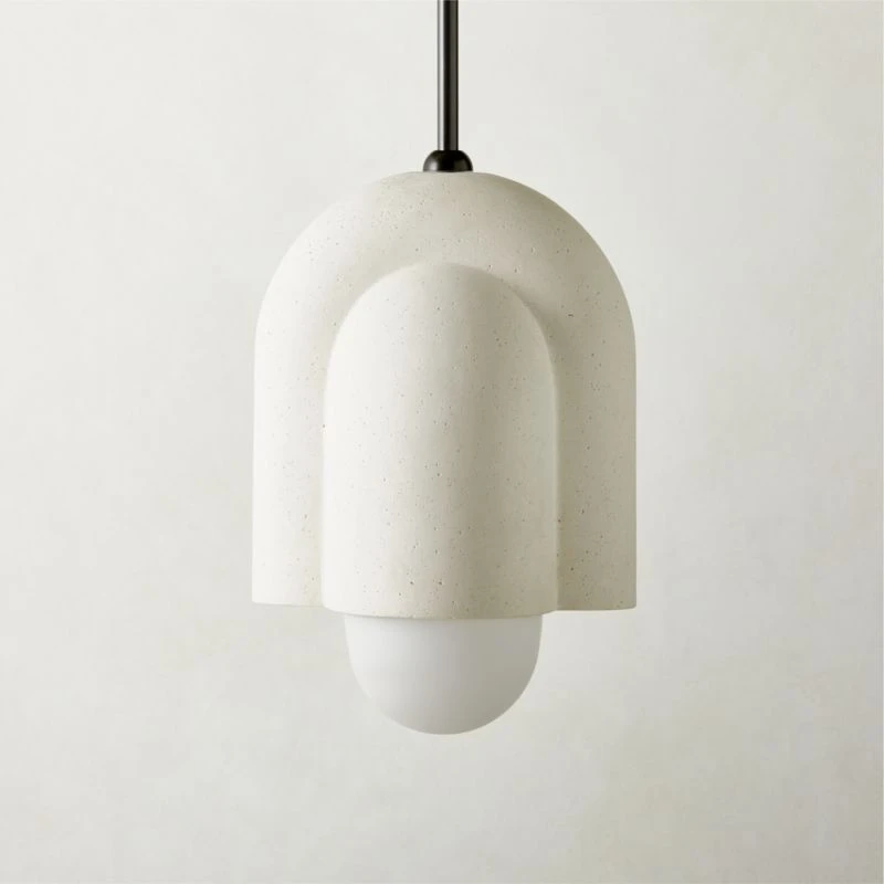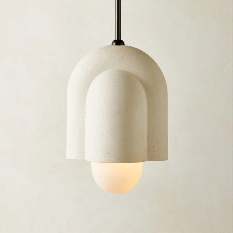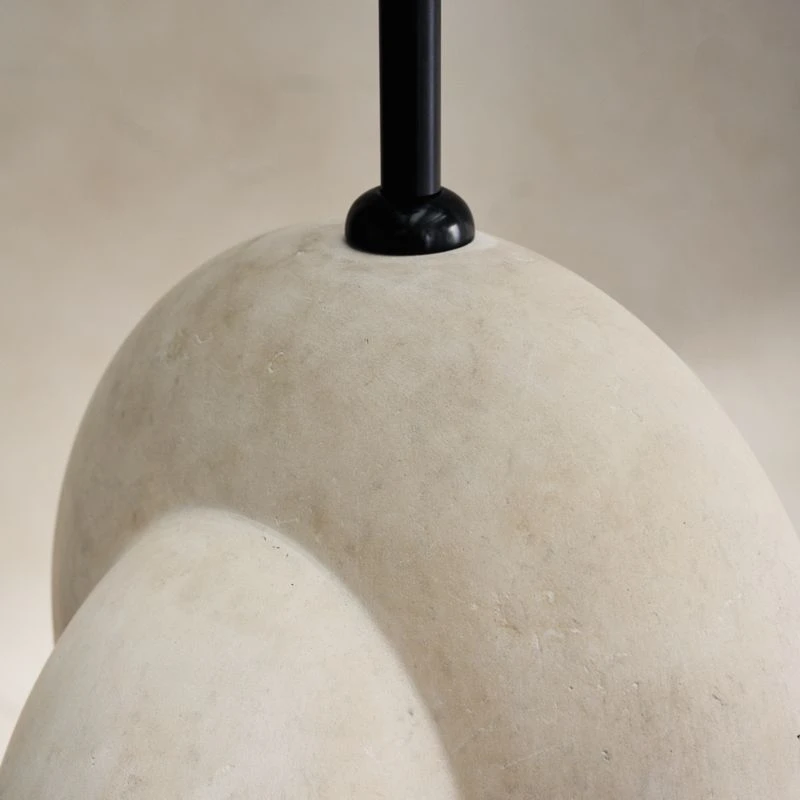 Carved from solid limestone, dome pendant light from NYC-based designer Farrah Sit is a statement piece. Classic brutalist design is softened by gentle curves carefully carved into limestone—a feat in itself. Inspired by the natural properties of limestone, including its substantial weightiness, the solid and sculptural qualities of the design are expressed through its elemental materiality, punctuated with touches of blackened brass. CB2 exclusive.