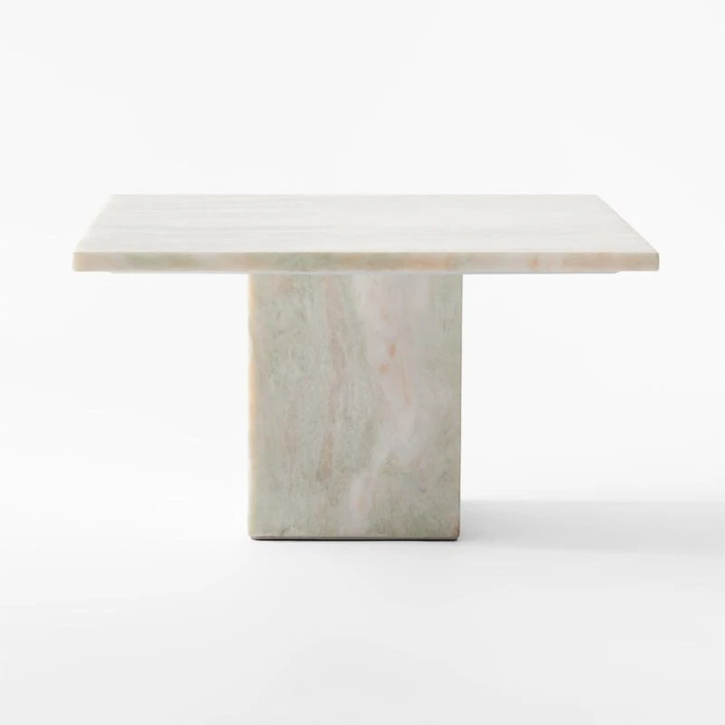 Made of natural Lady Onyx marble and inspired by 1970s Italian modern designs. Studio Anansi’s cocktail table features an architectural silhouette, layered neutral tones and a style we’re calling “soft brutalism.” Fluted details on the base and variation in the natural marble add to the coveted vintage feel. CB2 exclusive. Learn more about Studio Anansi on our blog. CB2 exclusive.