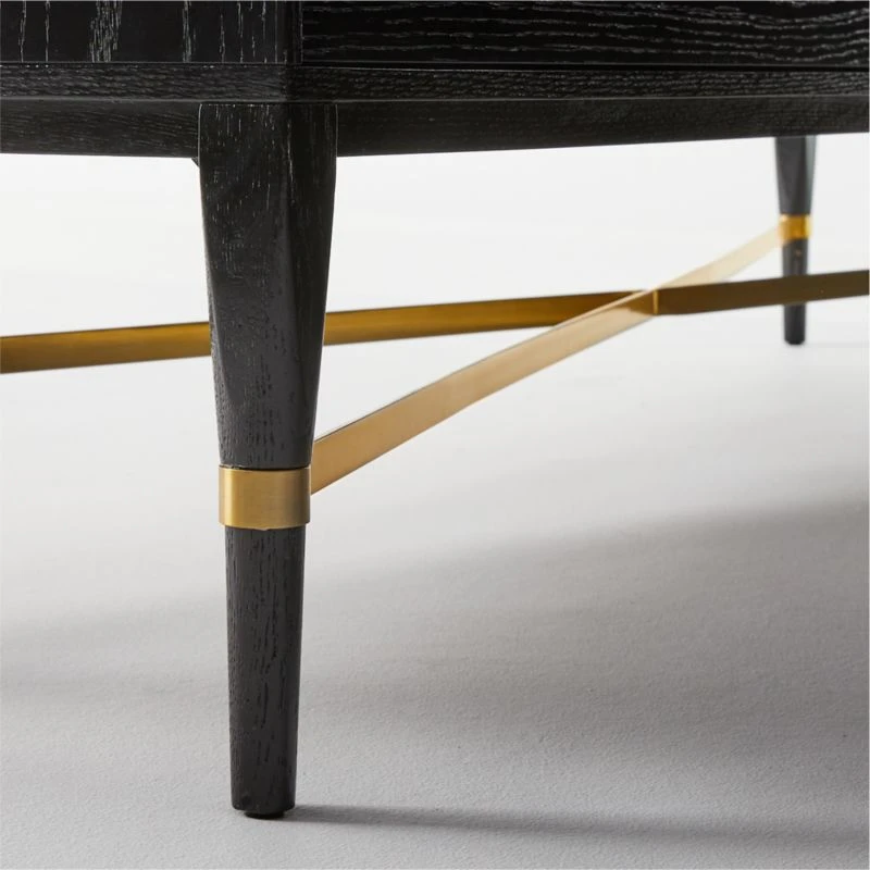 The slender lines, fine veneers and architectural detailing of Paul McCobb’s Connoisseur Group are just as elegant today as they were when first introduced in 1954. Beautifully crafted wood dresser features ebonized oak and brass crossbars and hardware—thoughtful details and sculptural influences that are stunning in their simplicity. CB2 exclusive.