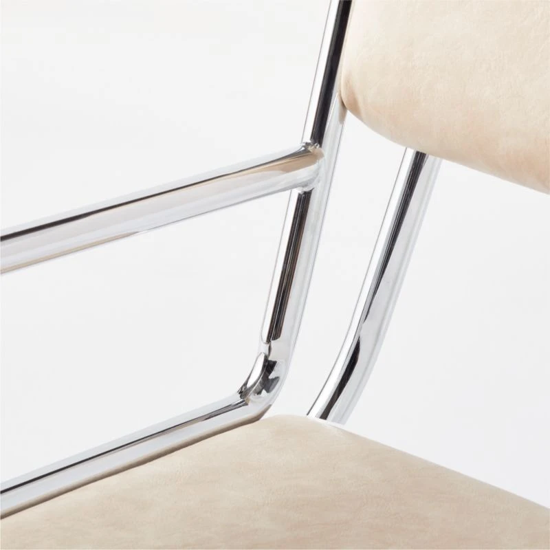 Designed by Barcelona-based Mermelada Estudio, this vintage-inspired office chair has a distinctly French industrial vibe. Polished nickel frame shows off soft vegan leather in a warm nude tone. Height is adjustable. A swivel base and rolling casters round out the details. Learn about Mermelada Estudio on our blog. CB2 exclusive.