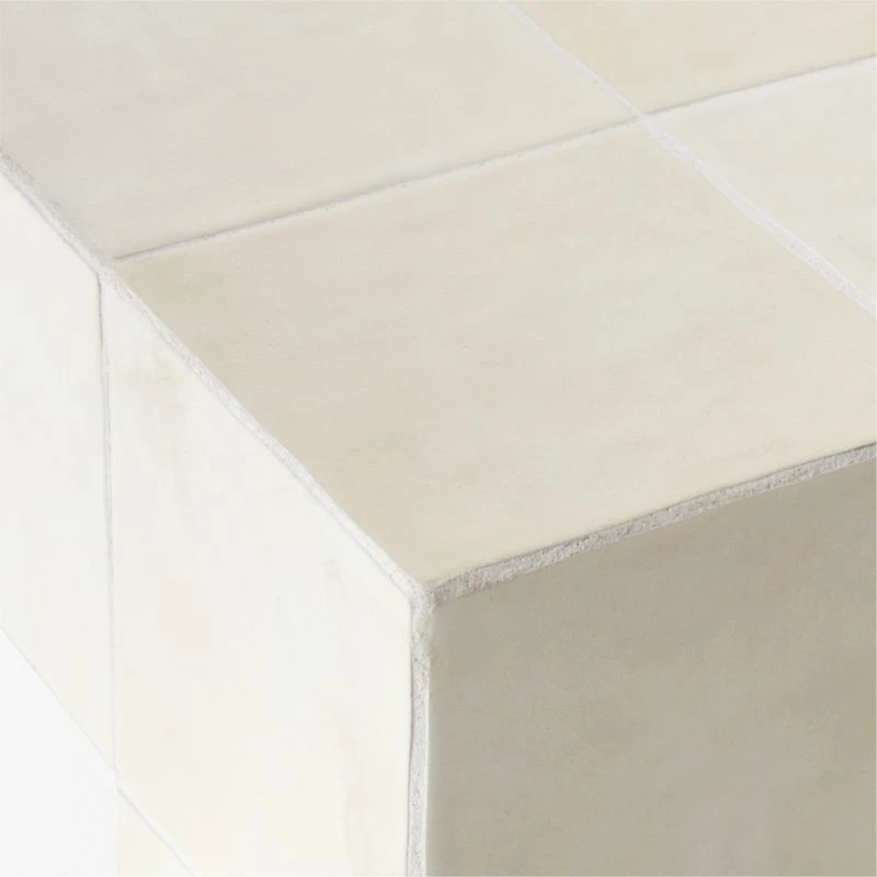 Hand-laid by skilled artisans, white ceramic tiles completely cover this modern outdoor coffee table by VUUE. Tonal variations in the tiles form a high-low grid pattern that’s unique to each piece. CB2 exclusive.
