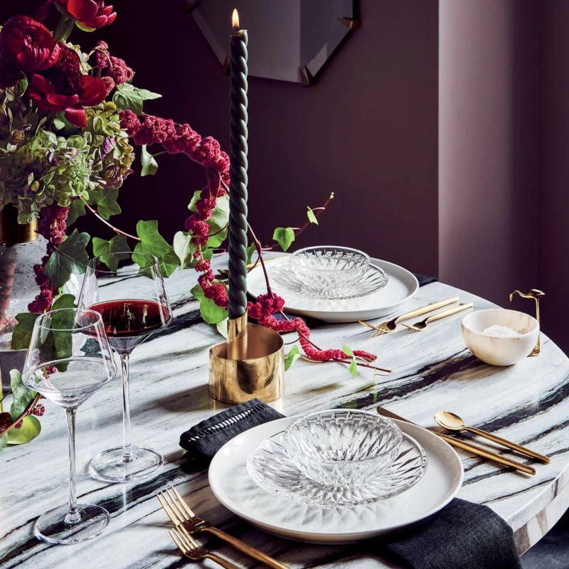 Decorative pressed-glass appetizer plates dish small bites with vintage attitude. Layer with your dinnerware for a fresh take on everyday. Pair with Daphne Low Glass Bowl. CB2 exclusive.