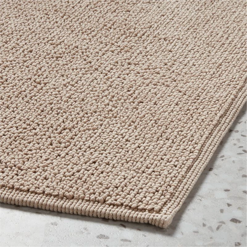 A simple upgrade to the traditional bath mat with unique texture that showcases a jacquard loom technique. Woven of organic cotton, latte bath mat is durable and machine-washable, making it perfect for everyday use. Also available in a bath runner. CB2 exclusive.
