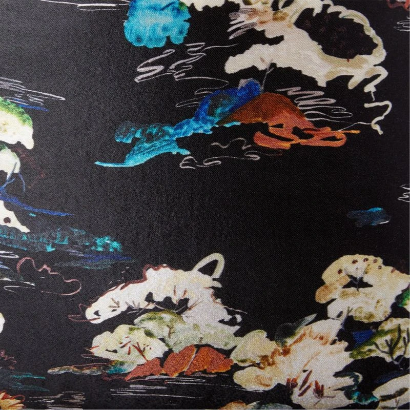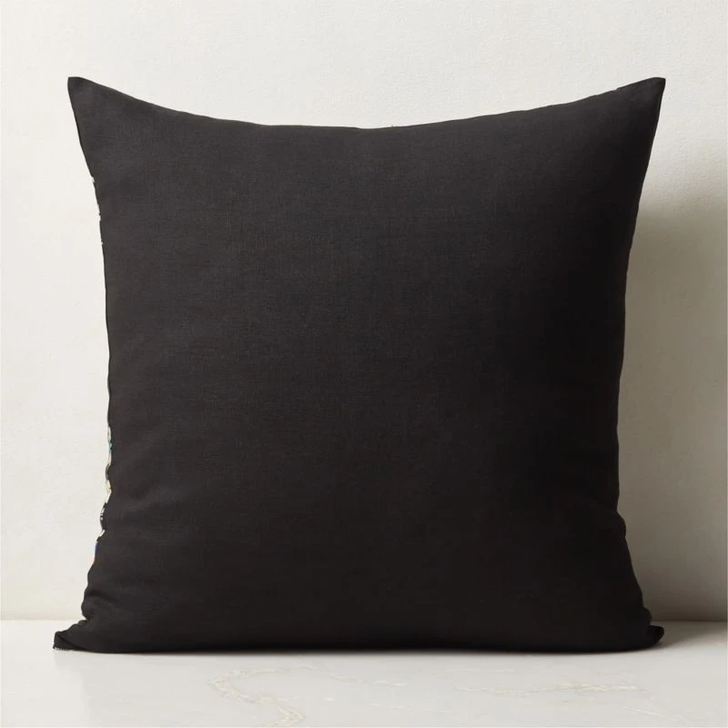Floral throw pillow offers a rich composition of vibrant blooms on a crisp black background. Designed by George Venson, throw pillow is woven from an elegant viscose/cotton blend for a silky hand with subtle sheen. CB2 exclusive.