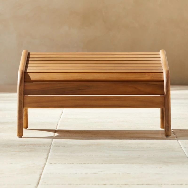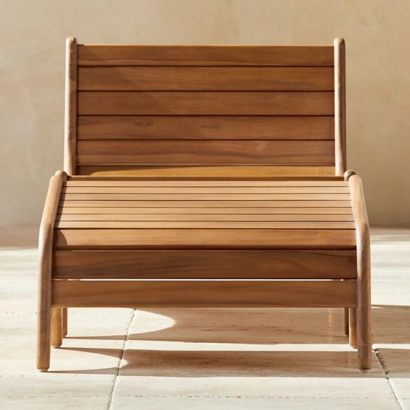 Barcelona-based designers Mermelada Estudio bring us an outdoor chair from our vintage dreams. Crafted from teak certified sustainable by the Forest Stewardship Council, the rich wood tone varies from blonde to deep amber. When left uncovered, the chair will patina to a silvery grey over time. Pair with matching ottoman for the ultimate spot to lounge. Learn about Mermelada Estudio on our blog. CB2 exclusive.