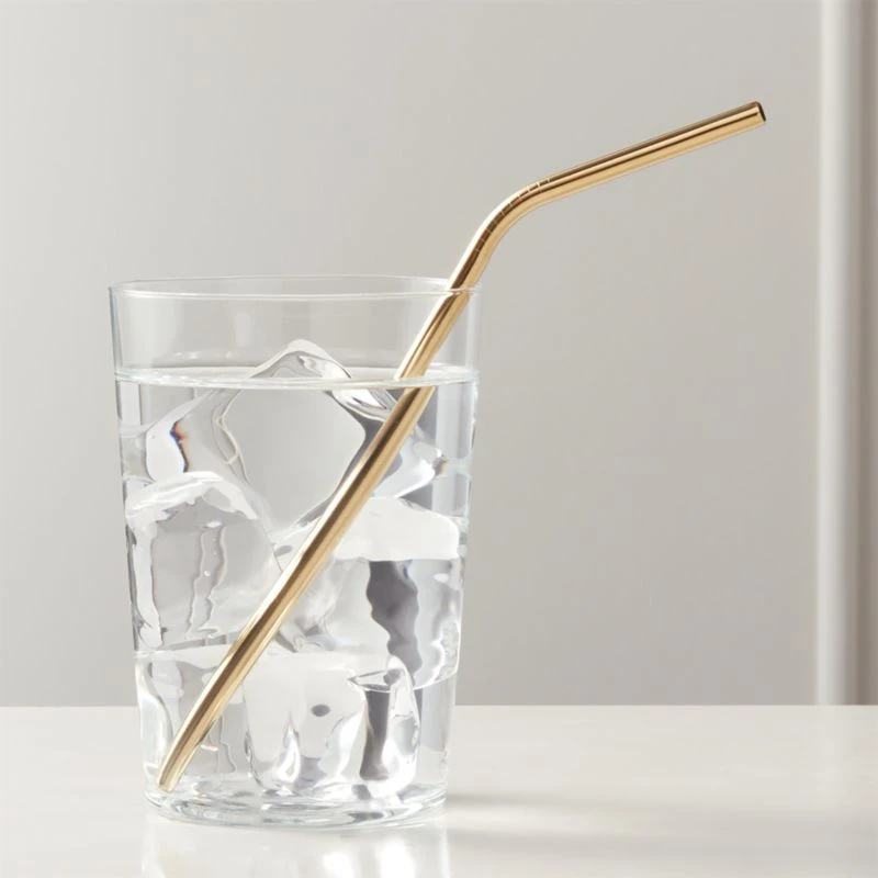 Eco-consciousness has never looked so good. Reusable, dishwasher-safe bent stainless steel straw finished in brushed gold sips in style. CB2 exclusive.