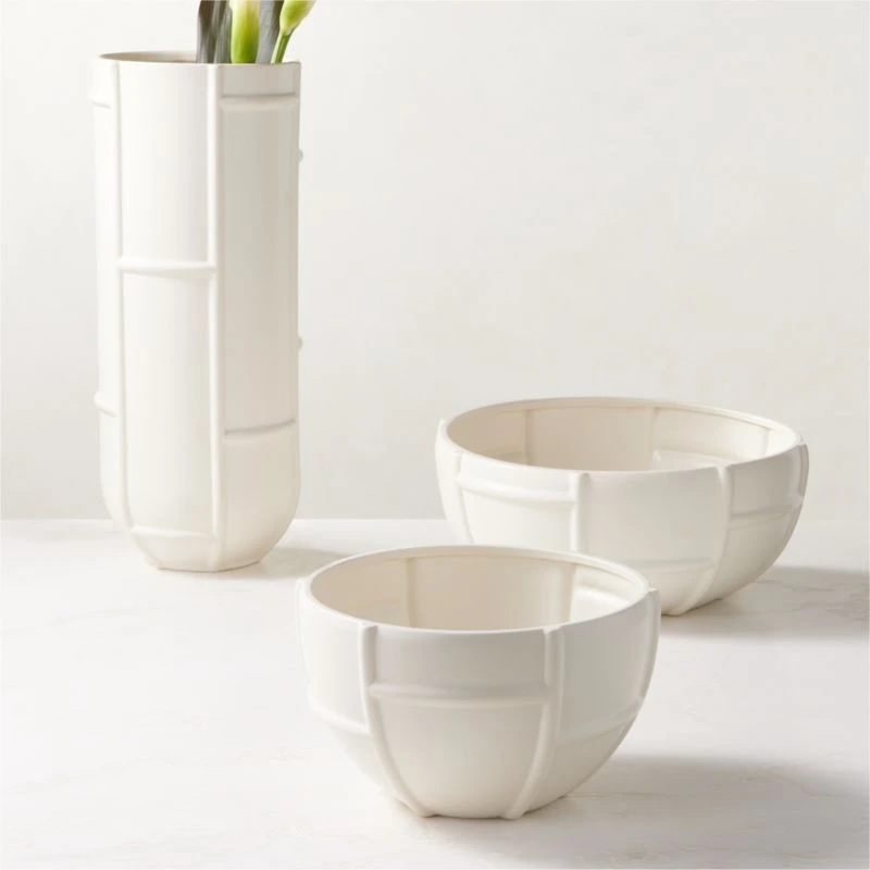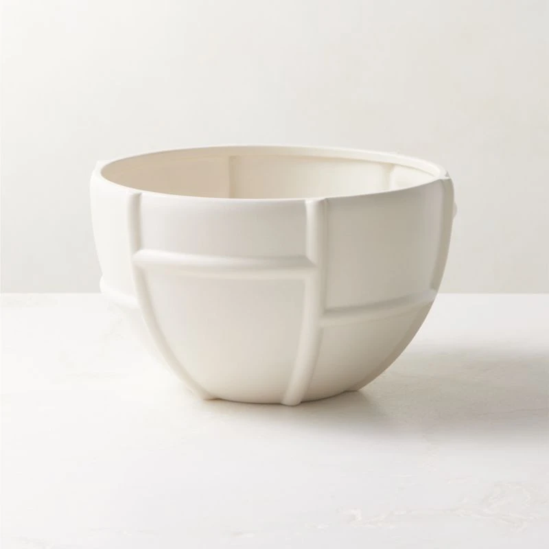 In exploring gridded patterns and playing with scale, garth roberts of garth™ created a series of decorative bowls with exceptional texture. Each piece is designed to stand alone or as part of a collection. This small decorative bowl features a white stoneware base that’s finished with a glaze, ensuring beautiful variation from piece to piece. CB2 exclusive.