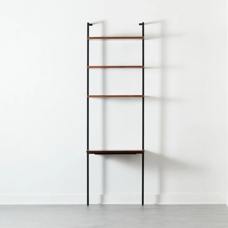 - Wall-mounted desk with three shelves