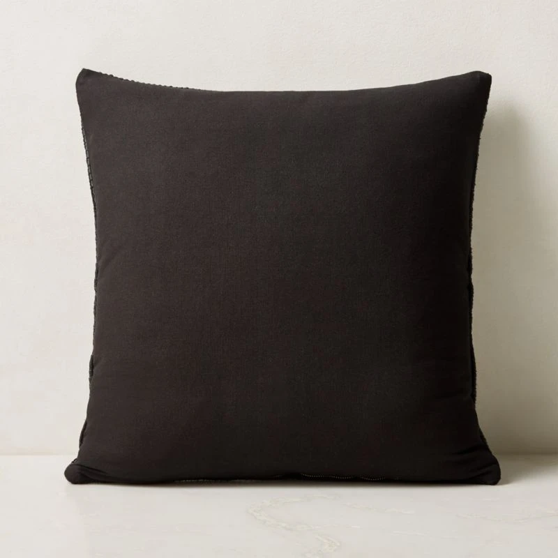 Hendrix Woven Black Leather Throw Pillow with Down-Alternative Insert 20” 20″Wx20″H