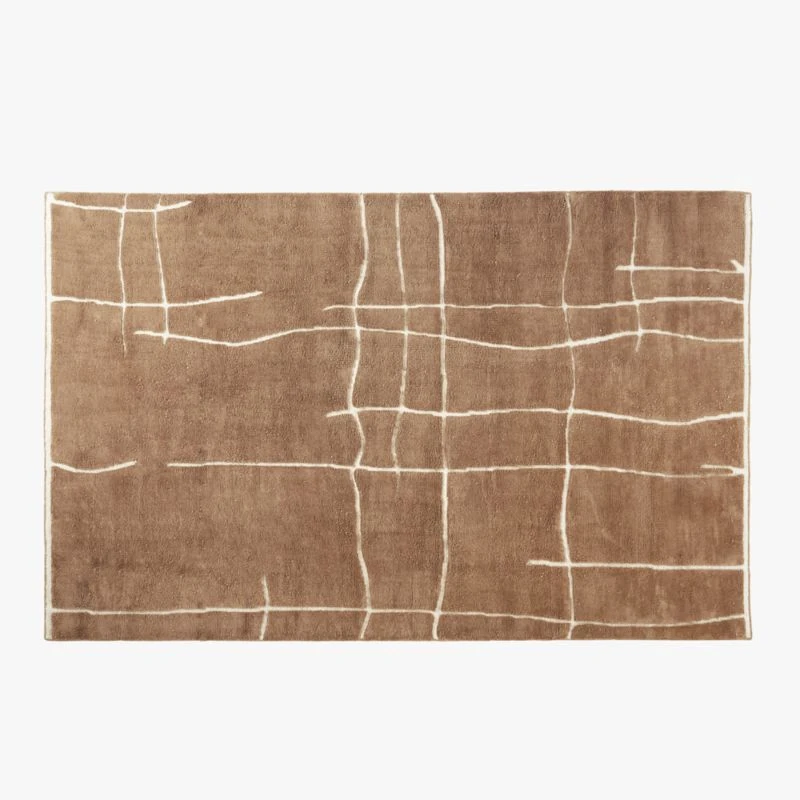 Woven from a mix of wool and silky rayon threads, this plush pile rug feels amazing underfoot. Warm mocha wool base is overlaid with soft white lines creating an abstract crocodile pattern. A sophisticated nod to the classic animal print. CB2 exclusive.