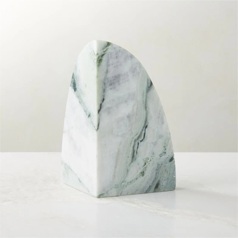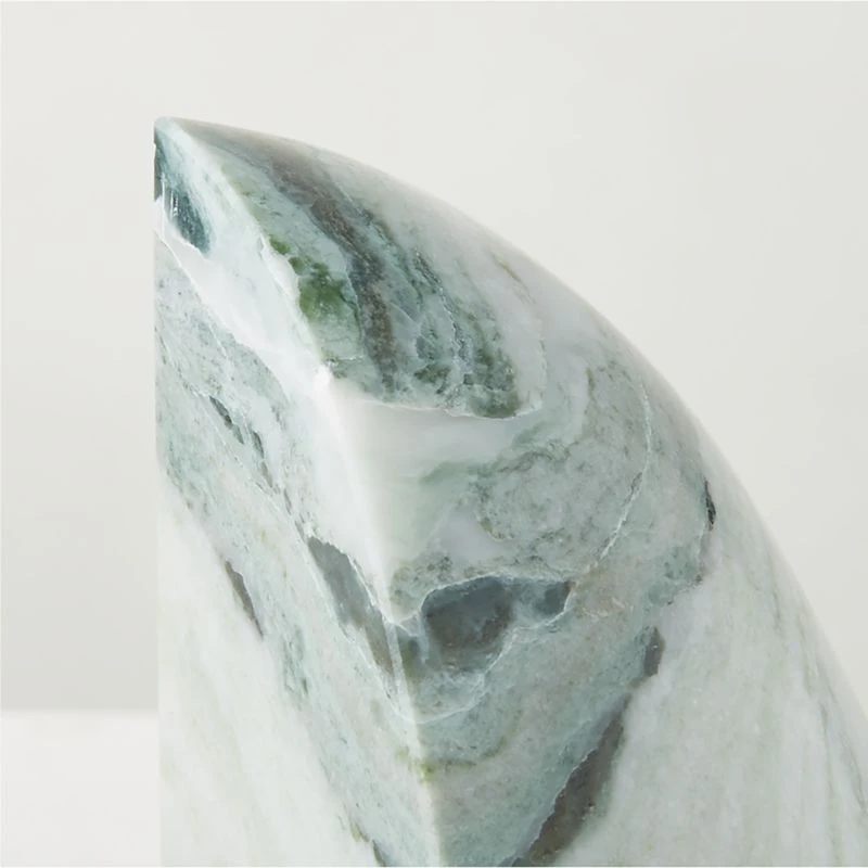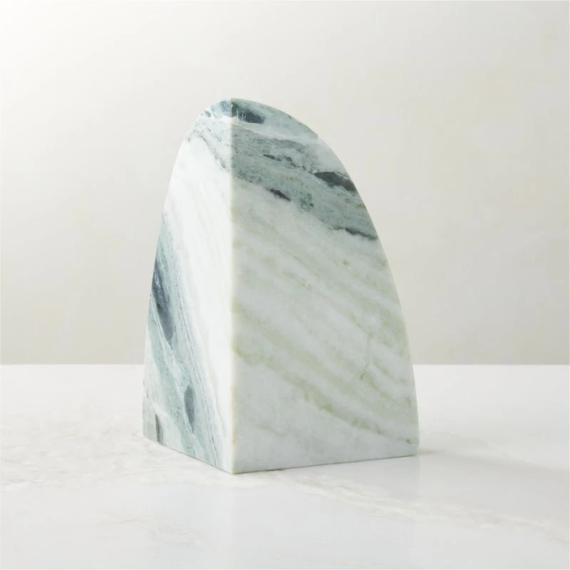 Crafted of solid Ice Jade marble, bookend is cut into a unique geometric silhouette to highlight the marble’s dynamic veining and activity. CB2 exclusive.