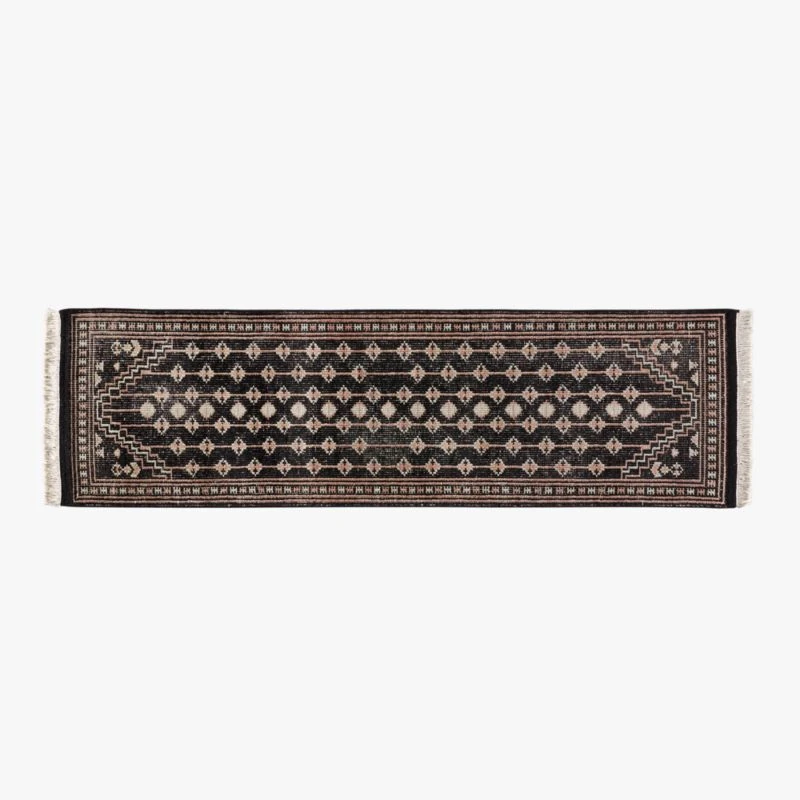 Inaz Hand-Knotted Black Wool Runner Rug 2.5’x8′ 2.5’x8′