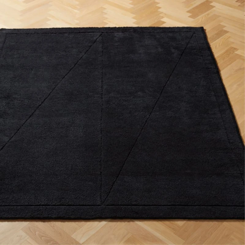 Minimalist from afar and statement-making up close, hand-knotted black shag rug by Axel Mert is inspired by the designer’s family and heritage. Made of 100% pure New Zealand wool, it features a line pattern influenced by the Kayamb, a traditional rectangular instrument from Mert’s mother’s home country of Mauritius. CB2 exclusive.