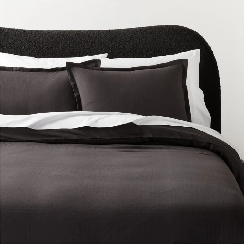 Supremely comfortable and impressively durable, this Turkish bedding blends two of the world’s finest fabrics: organic cotton and EUROPEAN FLAX ® linen (the highest grade of linen available). Along with being a highly sustainable fiber, flax linen is lightweight and breathable and becomes softer over time. Duvet cover and pillow shams reverse to an organic cotton percale backing for comfortable slumber throughout every season. CB2 exclusive.