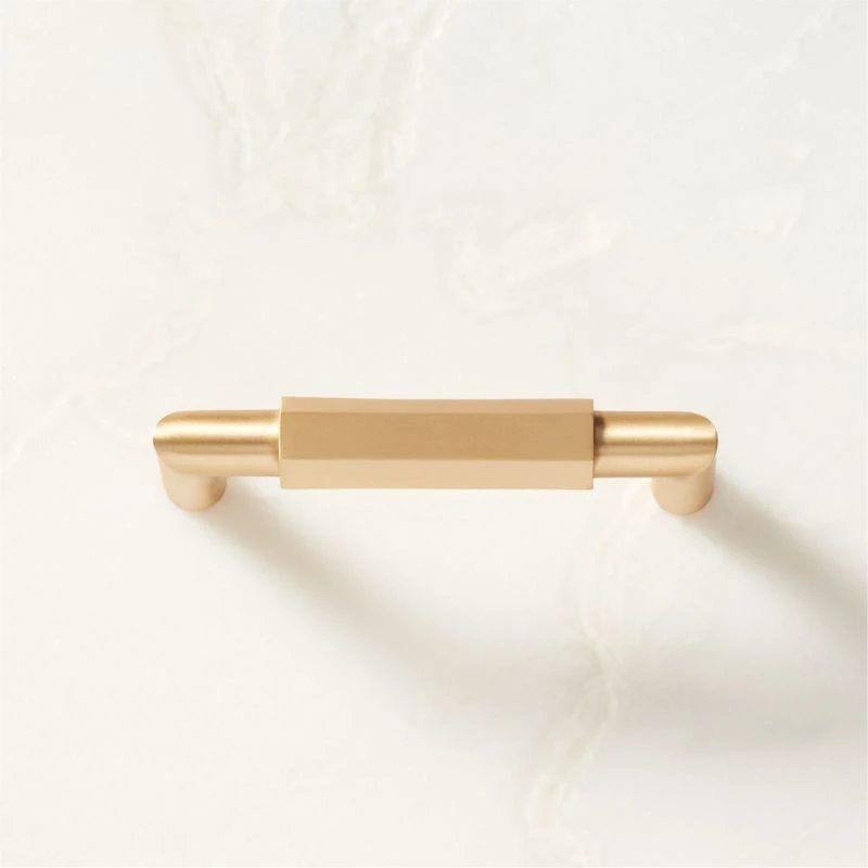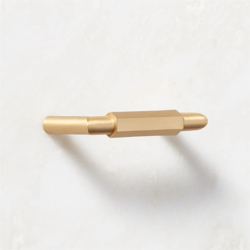 Bold hexagonal handle is inspired by the geometric architecture of French colonial pillars. Simple but modern form offers a pleasant heft with crisp, defined lines in a lustrous brushed brass finish. CB2 exclusive.