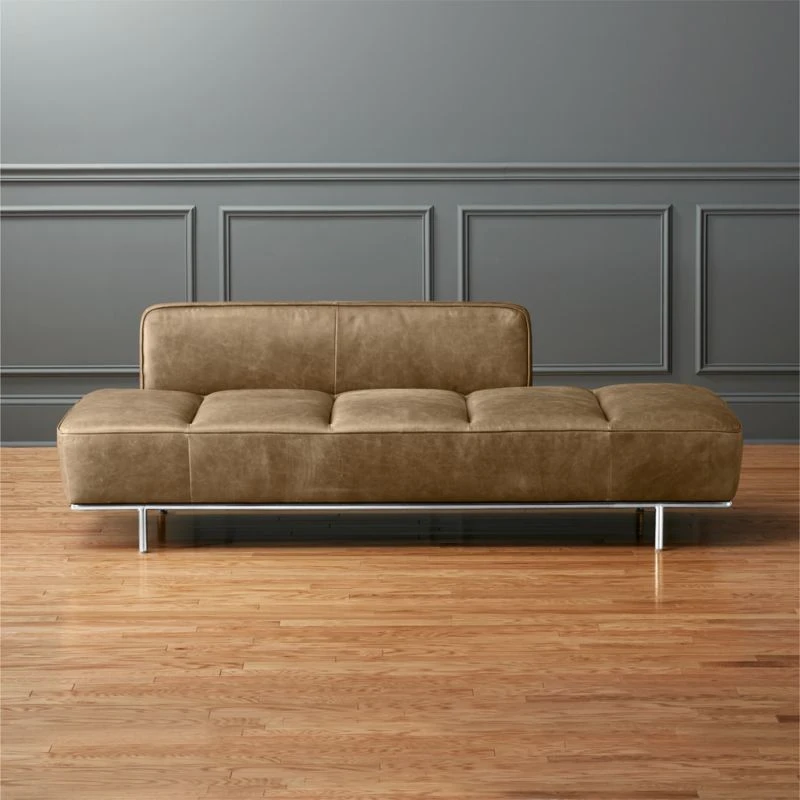 Midcentury meets so-right-now in this tumbled leather daybed with gleaming chrome base. Designed exclusively for CB2 by Londoner Leonhard Pfeifer, the piece needed to achieve a lived-in look. So we searched and searched until we found the perfect leather: Rich buffalo from rural India, dyed and tumbled for a soft, supple feel. As soon as this daybed is delivered, it’ll feel like you’ve had it for years. Perfectly worn and ready to lounge. Leather will continue to develop rich patina and character, year after year. Learn about Leonhard Pfeifer on our blog.