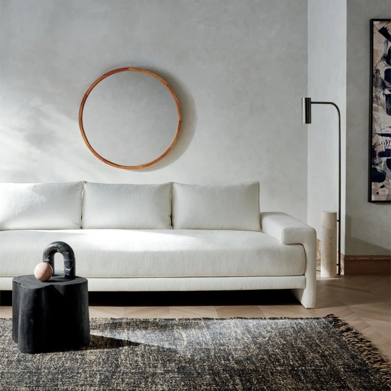 A vintage-inspired twist on the classic jute rug. Black jute yarn both warps and wefts for a looser, less structured weave. We also gave the rug a slight distressing for more of a found/collected vibe. Each rug will be unique. CB2 exclusive.