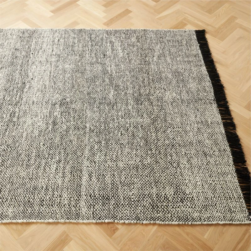 A vintage-inspired twist on the classic jute rug. Black and white jute yarn both warps and wefts for a looser, less structured weave. We also gave the rug a slight distressing for more of a found/collected vibe. Each rug will be unique. CB2 exclusive.