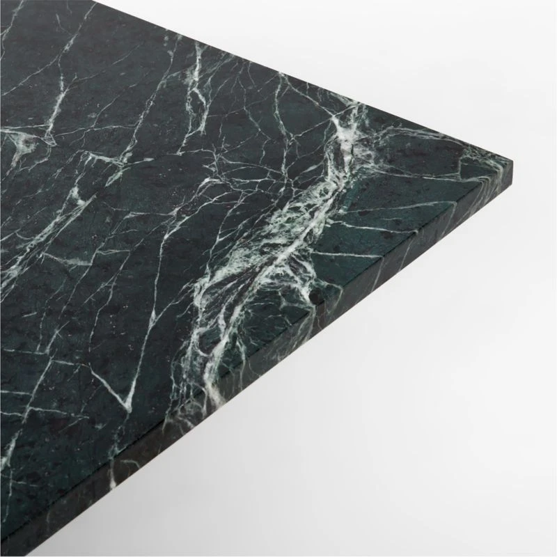 Mermelada Estudio’s ’70s Modernism inspired marble-topped table demands attention in any space. Set atop a tubular polished stainless steel base, the rectangular dark green spider marble slab top adds a luxurious feel for a sophisticated tabletop. Due to the activity inherent to natural stone, each piece will be uniquely yours. CB2 exclusive.