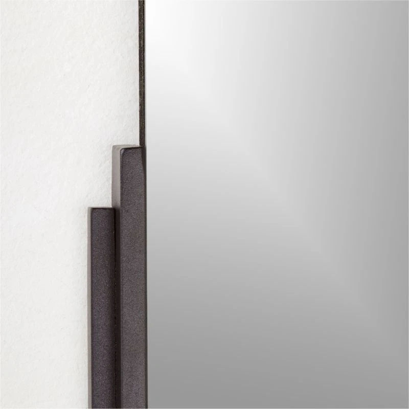 Melbourne-based VUUE brings an art deco aesthetic to wall decor with this matte black mirror. Sleek lines of solid brass in a matte black finish wrap around the bottom of the rectangular mirror—a modern step up from the standard. Pairs with the Mimi hardware collection for a cohesive look. CB2 exclusive.