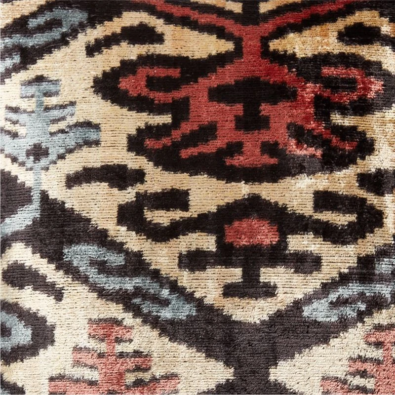 Turkish silk threads are handloomed into a rich, velvet-like texture to create one of the most sumptuous, luxurious throw pillows we’ve ever seen. Because the silk is collected from different areas, there will be slight differences in the doe brown, sequoia rust and black color palette, as well as variations in the weave due to the handcrafted nature of the process. Knife edge with a hidden zipper closure, pillow flips to a solid cotton/linen blend back. CB2 pillows include a pillow insert in your choice of feather down or down alternative. CB2 exclusive.