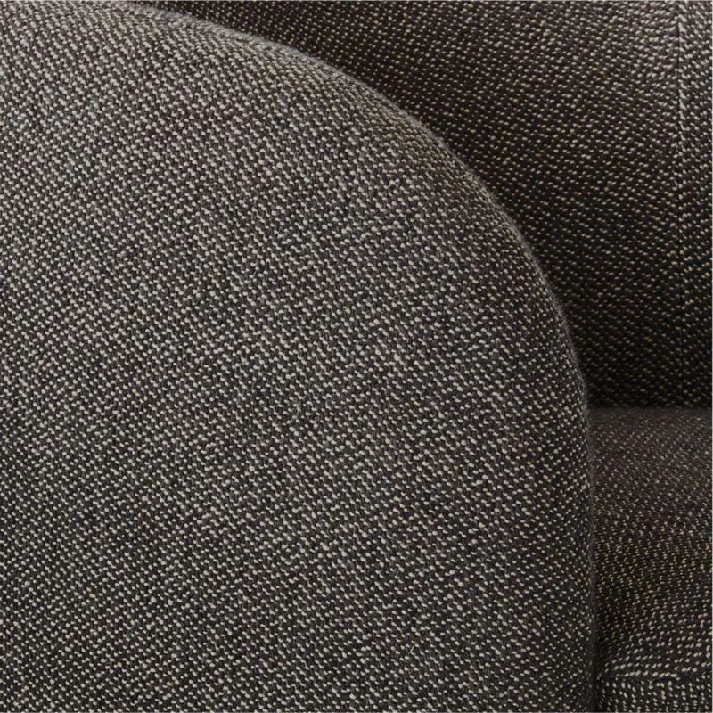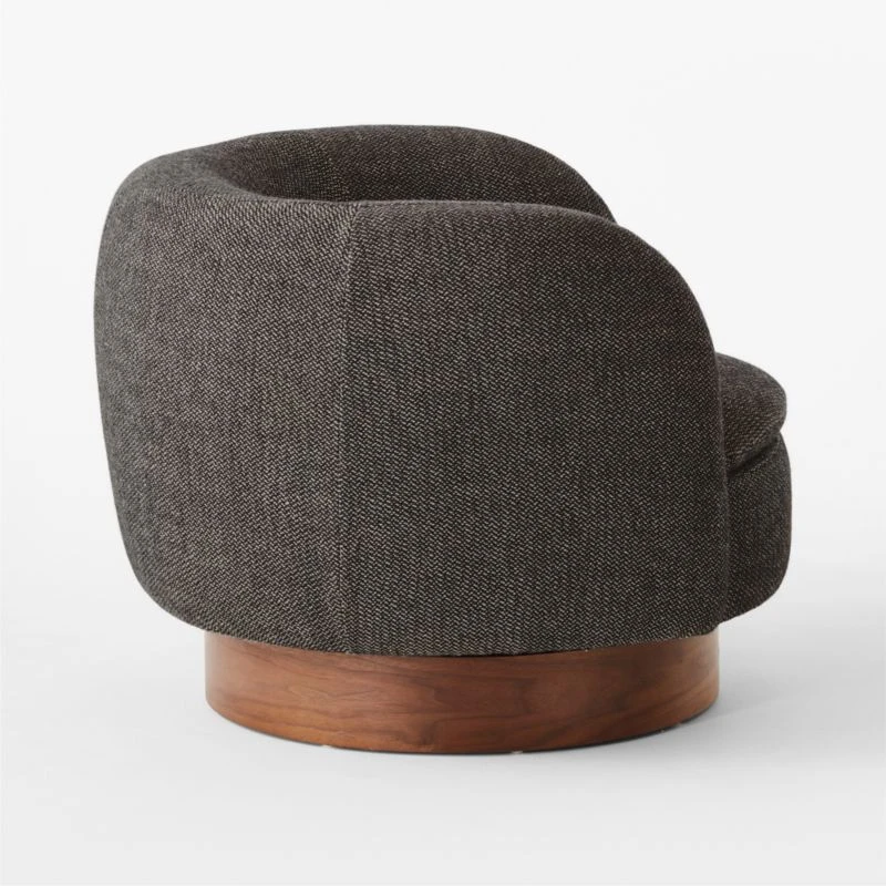 Swivel chair by Lawson-Fenning draws on the designers’ admiration of California interior design in the 1950s and 1960s. Inviting seat fully swivels 360 degrees, appearing to float above a circular base of wood certified sustainable by the Forest Stewardship Council ®. Upholstery fabric, created specifically for the Muir chair and sofa, is made with wool for a luxurious feel and has accents of white to contrast with the grey for a midcentury-inspired moment. CB2 exclusive.