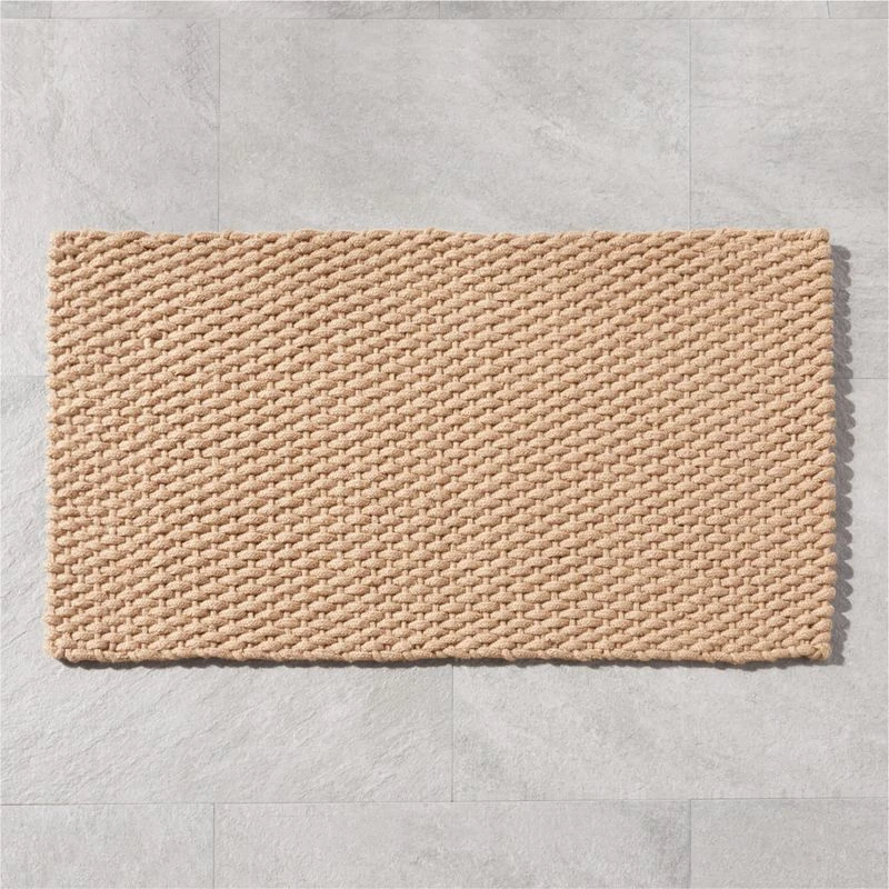 Natural-colored outdoor doormat is rich in texture with a high-low pile that creates depth and dimension. Woven of recycled yarn certified to the Global Recycled Standard (GRS), doormat stands up to the elements season after season. CB2 exclusive.