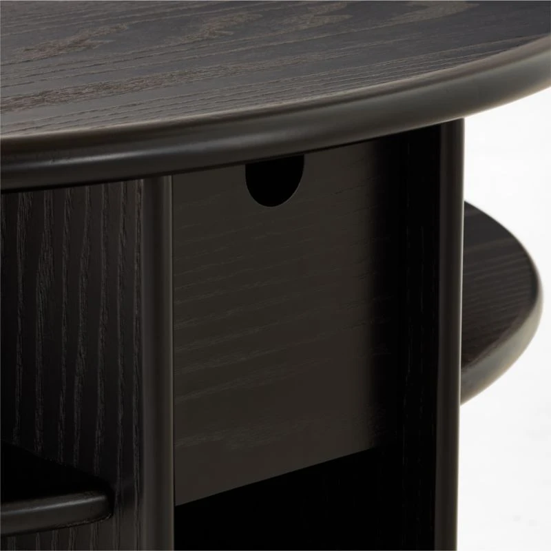 Originally designed in 1987, Gianfranco Frattini’s ebonized ash nightstand highlights his architectural precision and the era’s postmodern flair. The piece’s structural connections double as decorative accents, drawing attention to its overall elegant proportions. A pull-out drawer sits between horizontal upper shelves, while a vertical lower shelf is sized to display books and magazines. Crafted of ebonized ash veneer certified sustainable by the Forest Stewardship Council ®, the surface has subtle wire brushing that brings out the richness of the wood grain. As with the original, our reintroduction evokes appreciation for the intersection of geometry and natural materials. CB2 exclusive.