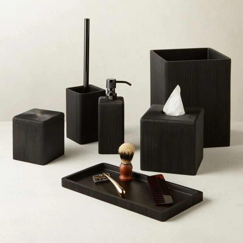 Soft ribbed texture in classic black adds a bit of edge to your daily routine. CB2 exclusive.