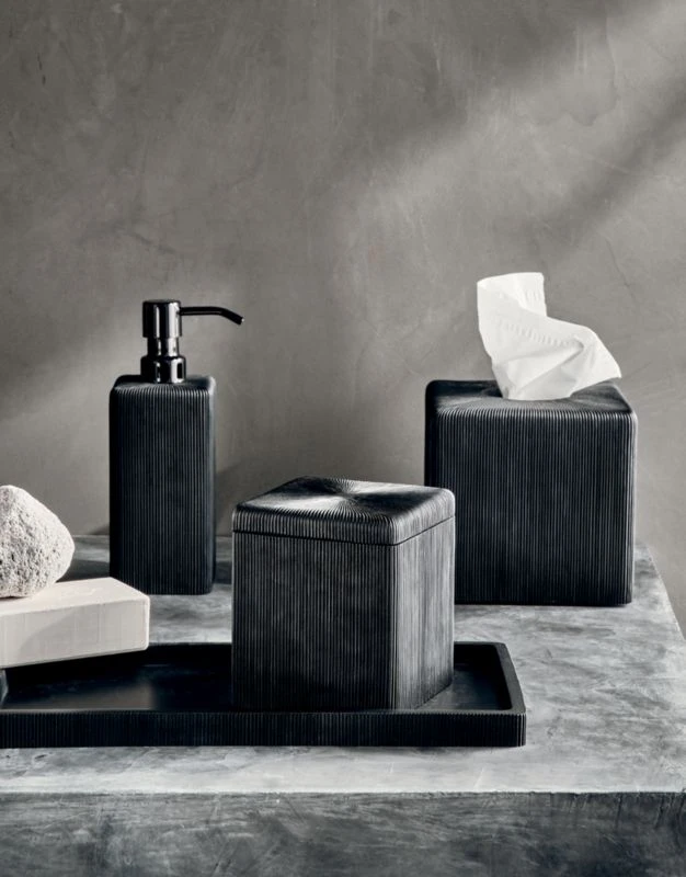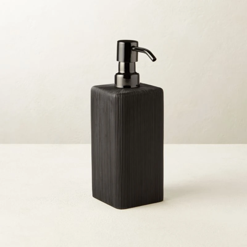 Parello Pleated Black Soap Pump. 2.75″ dia. x 8″H