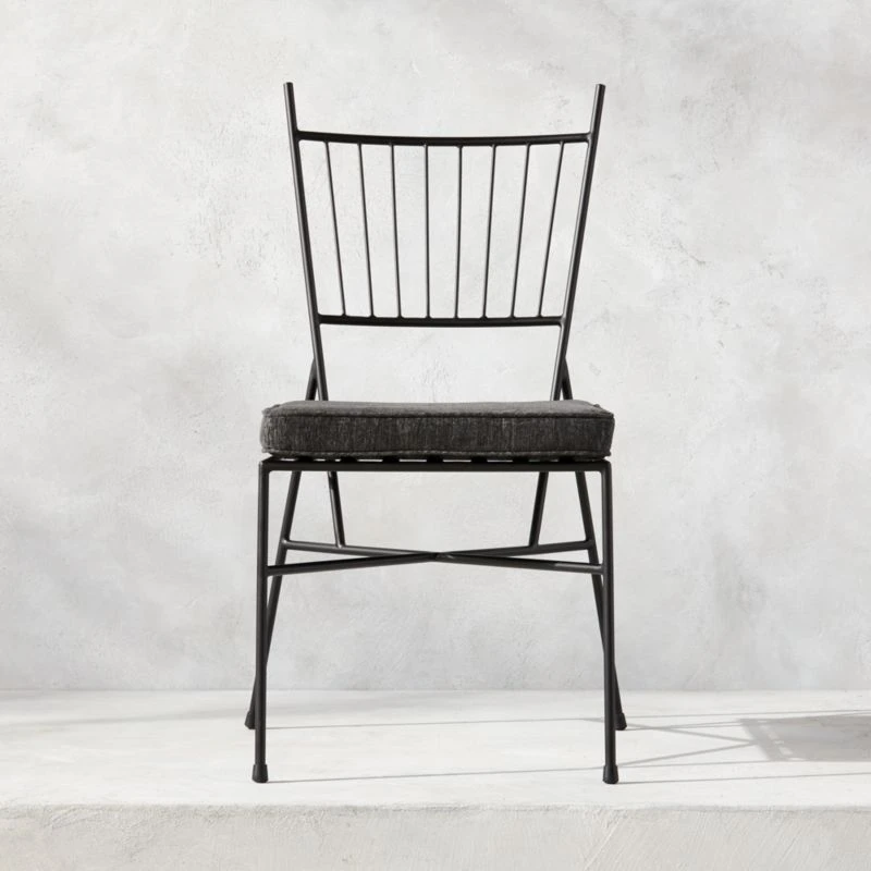 First introduced as part of the Round Dining Group in Paul McCobb’s 1952 Pavilion Collection, this armless dining chair was designed to be durable, beautiful and easy to care for. Solid iron frame will stand both the elements and the test of time, as will the reversible cushion in grey Sunbrella fabric. The Pavilion Collection was featured in the June 1953 issue of House & Garden magazine in an original McCobb illustration, yet doesn’t feel at all out of place in a modern outdoor space or even an indoor dining room. CB2 exclusive.