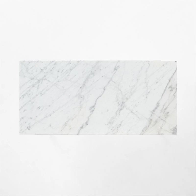 First introduced as part of the Aerial Dining Group in Paul McCobb’s 1952 Pavilion Collection, this dining table was designed to be durable, beautiful and easy to care for. White Venato Carrara marble top contrasts with the craftsmanship and modernity of a solid satin ivory iron frame. The Pavilion Collection was featured in the June 1953 issue of House & Garden magazine in an original McCobb illustration, yet doesn’t feel at all out of place in a modern outdoor space or even an indoor dining room. CB2 exclusive.