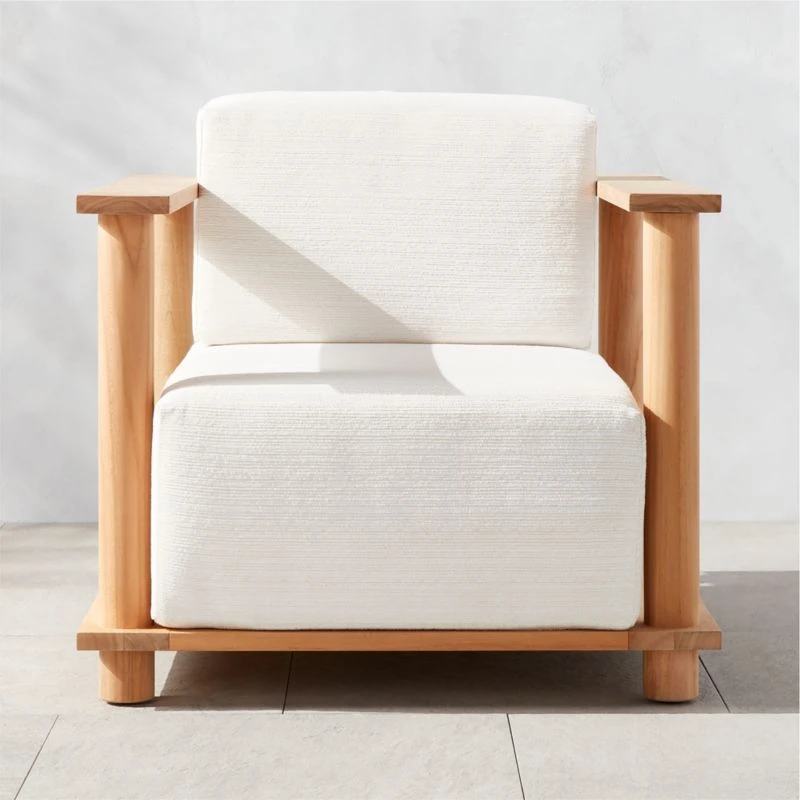 Pinet Teak Outdoor Lounge Chair with Textured Ivory Perennials® Cushions 34″Wx39″Dx22.5″H