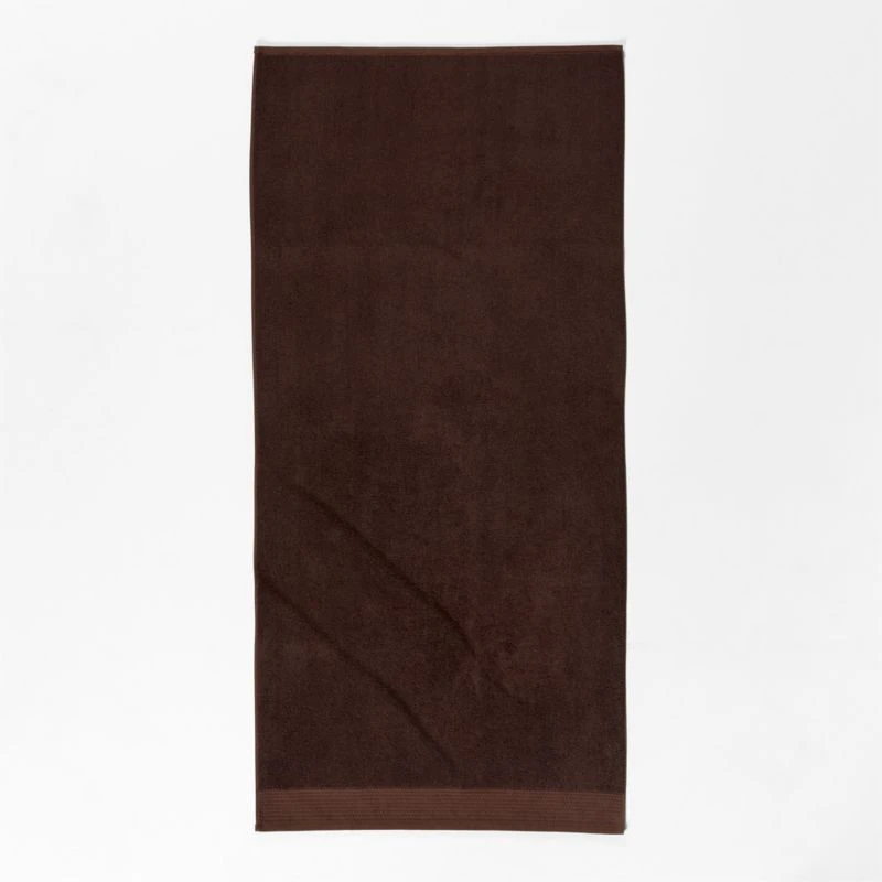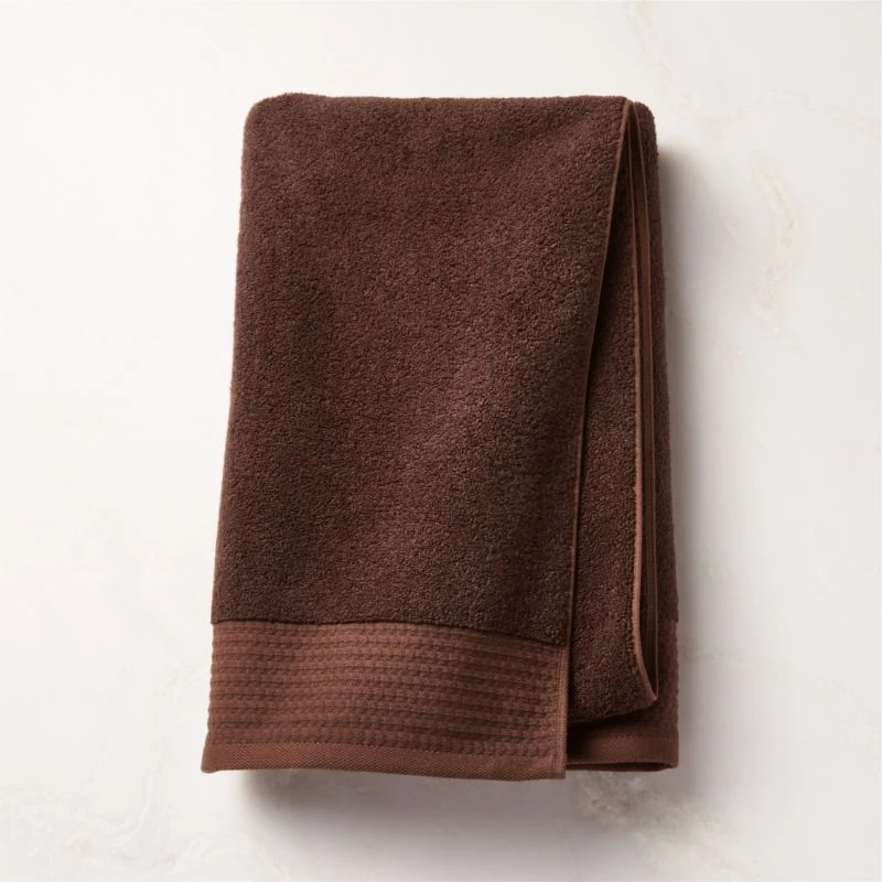 Breathable cotton and absorbent bamboo weave a rich chocolate bath towel that brings spa-like luxury home. Plush and substantial in weight, triple-border towel wicks away moisture and hangs clean and classic on the towel bar. CB2 exclusive.