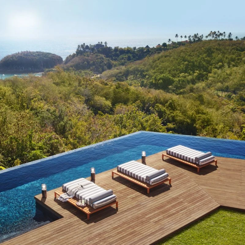 If left uncovered and untreated, natural teak will patina to a beautiful silvery grey.