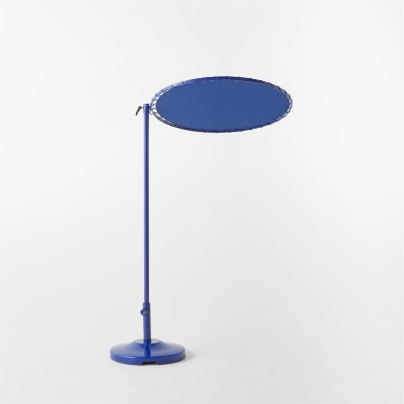 Scaled just right for small urban outdoor spaces, sun shade keeps rays at bay in cobalt blue for our collection with Chicago-based fashion designer Azeeza. In her signature hue, Azeeza adds a pop of color to the minimalist design as part of her thoughtful approach to how she “colored the world of CB2.” Steel frame tilts and angles right where you need it. Base has built-in wheels for easy maneuverability. CB2 exclusive