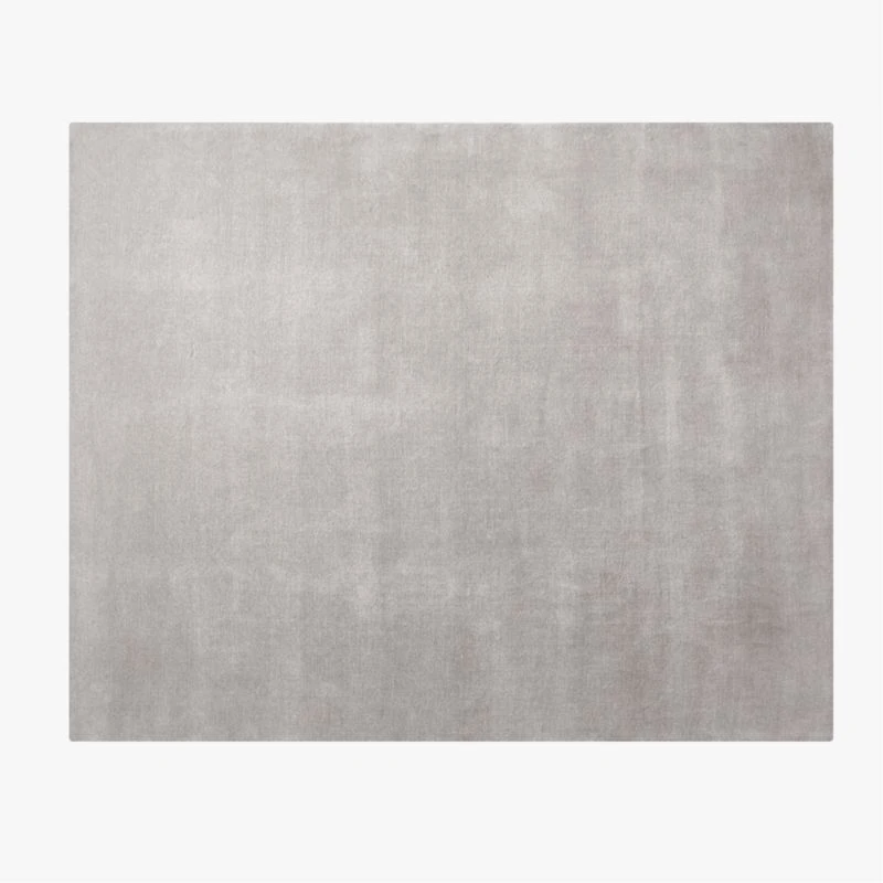 Handloomed by skilled artisans, New Zealand wool rug is distinguished by its lush softness, warm luster and subtle melange effect that’s reminiscent of Merino wool. Recycled wool yarns are loomed into a dense light grey pile with an overall effect that reminds us of high-end menswear designs. CB2 exclusive.