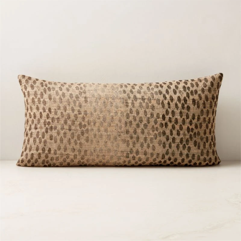 Made from a luxe silk/linen blend, neutral throw pillow is rich in texture and pattern. The animal-inspired print is woven with high contrast and fading around the entire pillow to achieve a gorgeous distressed effect that reads vintage. CB2 pillows include a pillow insert in your choice of feather down or down alternative. CB2 exclusive.
