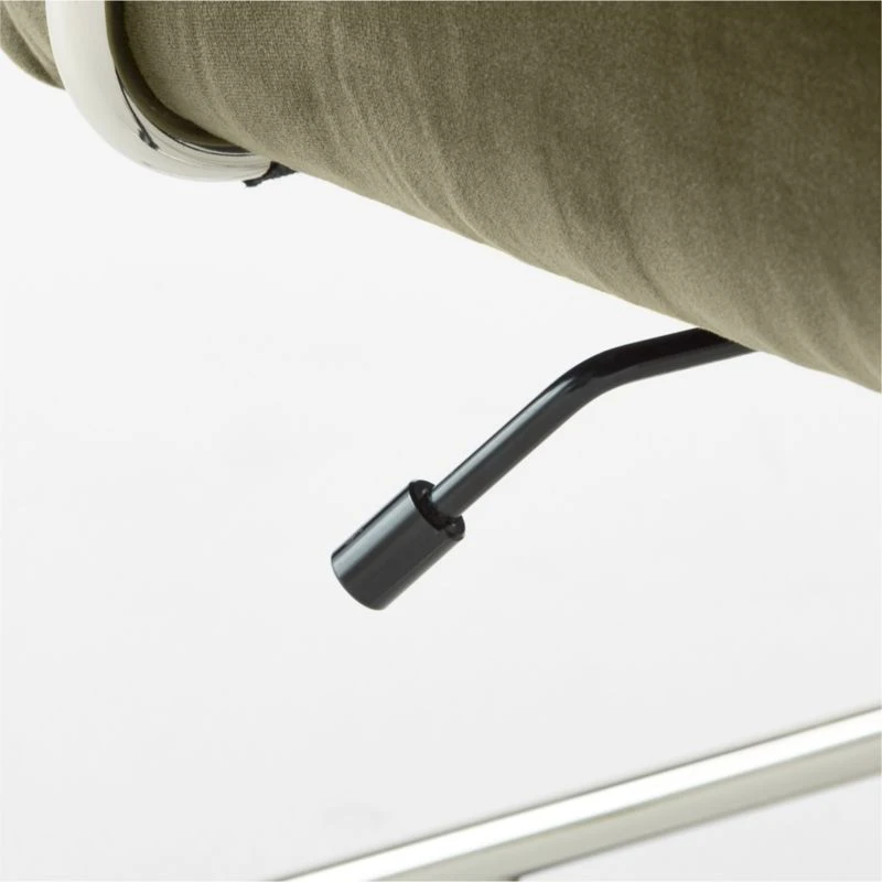 Olive velvet executive chair by Jannis Ellenberger has a chic and commanding presence. High back and cushioned foldover details add to the sophisticated aesthetic, while an iron tube base looks modern in a polished nickel finish. Seat adjusts with tilt-back and gas-lift features to create a comfortable perch for 9-to-5 and beyond. CB2 exclusive.