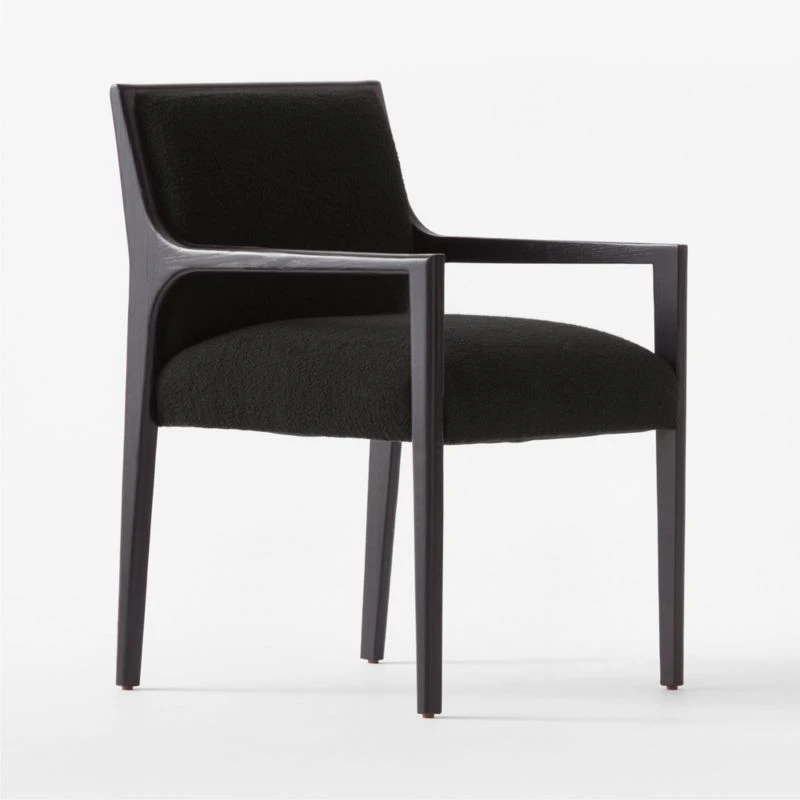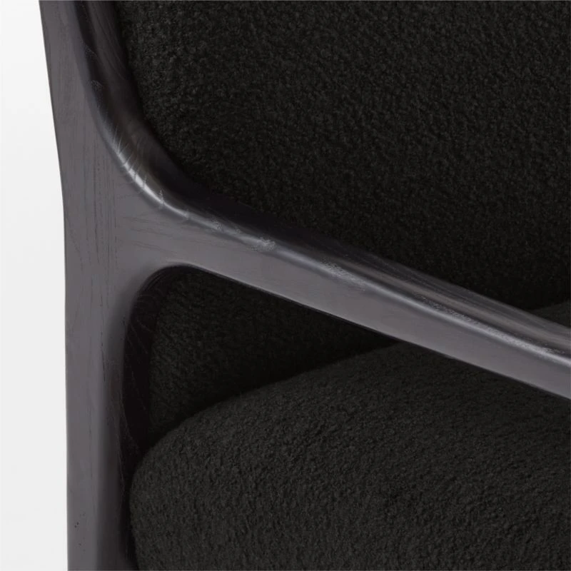 Barcelona-based Mermelada Estudio combines a classic silhouette with luxe boucle for a clean look that fits any design aesthetic. Ebonized ash wood frame supports a black boucle seat, adding texture and dimension to the monochromatic design. CB2 exclusive.